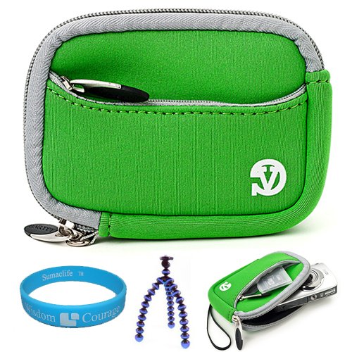 Green & Grey Mini Glove Protective Neoprene Sleeve Carrying Case for Nikon Coolpix S6200, S9100, S8200 + Black/Blue 6-inch Mini Tripod Stand with Flexible Grip Legs + SumacLife TM Wisdom Courage Wristband Review