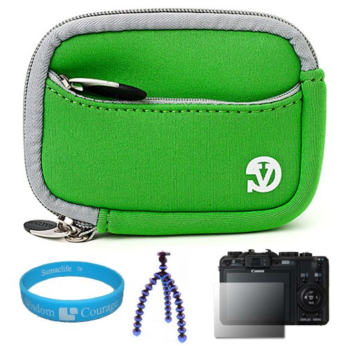 Green & Grey Mini Glove Protective Neoprene Sleeve Carrying Case for Nikon Coolpix S6200, S9100, S8200 + Universal Screen Protector + Black/Blue 6-inch Mini Tripod Stand with Flexible Grip Legs + SumacLife TM Wisdom Courage Wristband Review